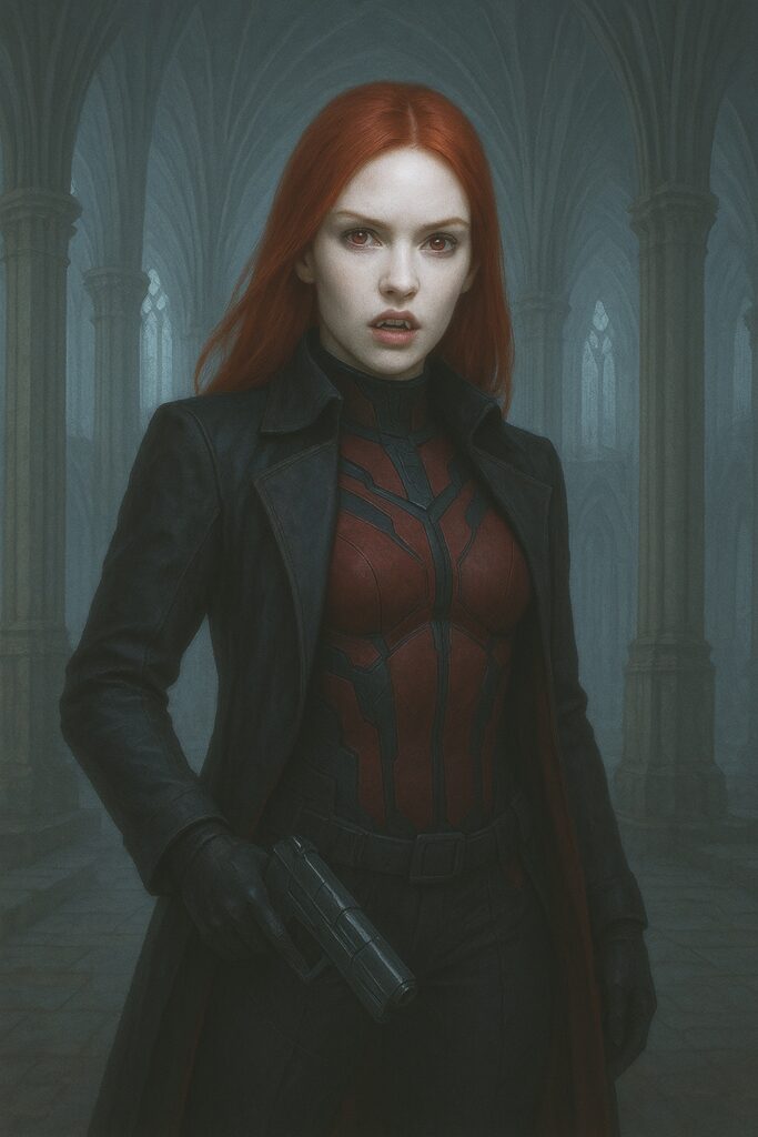 Indessen verharrte eine feingliedrige Frau mit auffallend rot gefärbten, nach hinten gebundenen Haaren am seitlichen Sims einer breiten Kanalröhre, in der ein wild ablaufender Fluss allerlei Unrat mit sich trug. Ihre spitze Nase witterte plötzlich einen neuen Duft, durch den Gestank von Fäkalien, Industrieöl und Speiseresten. Die Gefahr näherte sich rasch. Desaria richtete mit einer Hand die Steal Automatik aus, mit der anderen zog sie ihre Klinge, deren geweihtes Metall sogar für sie eine Gefahr darstellte, sollte sie damit in Berührung kommen.