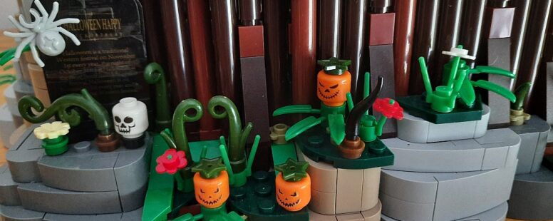 Jedes Jahr ergänze ich meine Halloween-Deko. Vor zwei Jahren war es eine Michael Myers Maske aus dem Film Halloween Ends, letztes Jahr habe ich mir einen silbernen Totenkopf und schwarze Blumen mit Augenblüte besorgt. Doch in diesem Jahr verfolge ich eine andere Idee: Ich erweitere nicht meine Wohnungsdekoration, sondern ich staffiere die Klemmbausteinburg Burg Blaustein von BlueBrixx Halloween-mäßig aus. Eigentlich