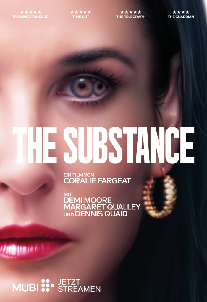 Nahezu perfekt wird das gleich am Anfang des Films symbolisiert, als der Stern von Elisabeth Sparkle in den Hollywood Walk of Fame eingegossen wird, zu Beginn noch strahlend und vollkommen, doch im Laufe der Jahre verwittert der Stern und bekommt Risse. Auch in der letzten Einstellung zum Ende des Films sehen wir den Stern noch mal. Da schließt sich der Kreis zu einem rundum vollendeten Schluss.Demi Moore verkörpert die alternde Schauspielerin schonungslos und verlangt sich dabei mit Sicherheit selbst viel ab. Moore wurde für ihre Rolle 2025 für den Oscar als beste Hauptdarstellerin nominiert.